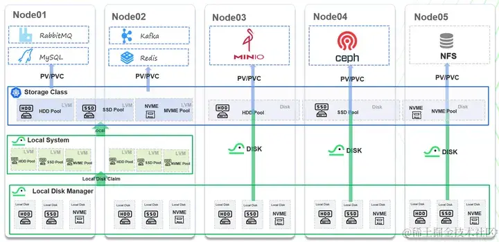 我们考虑到许多用户目前是基于物理服务器搭建系统,而物理服务器本地磁盘的存储资源有很多会被浪费。为此,我们可以将物理服务器上本地磁盘的存储整合,构建一个存储池供用户使用,从而提高存储资源的利用率。