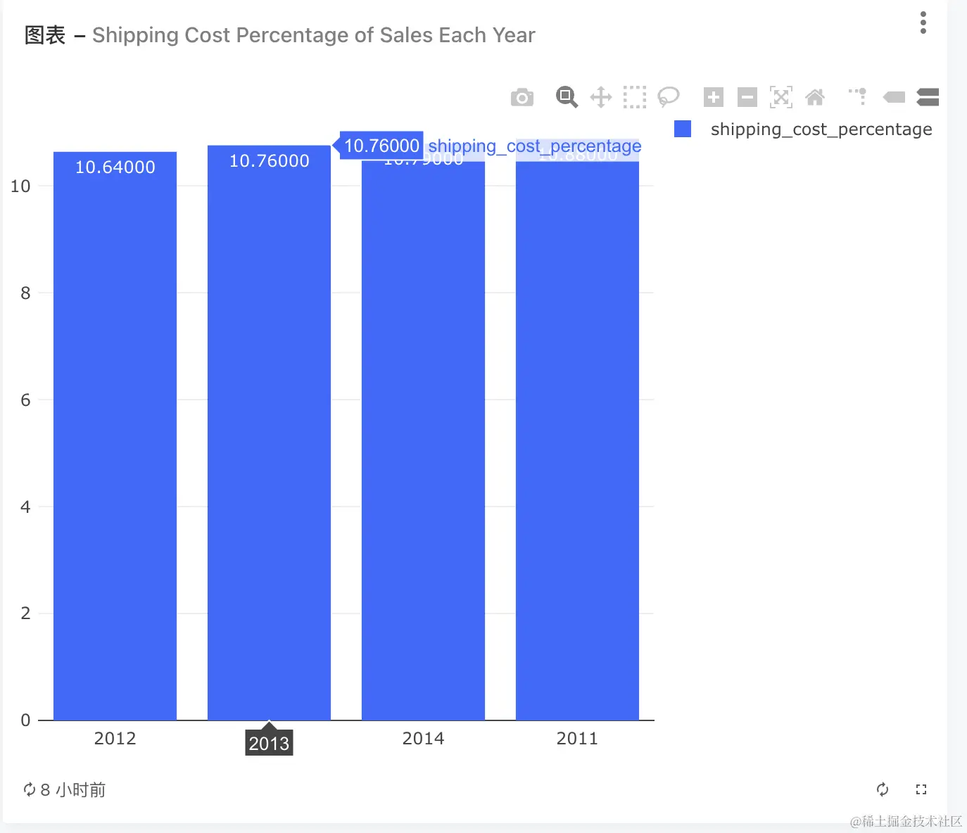来活儿喽!客户需要一份 每年运输费用占销售额比例,同时用柱状图展示