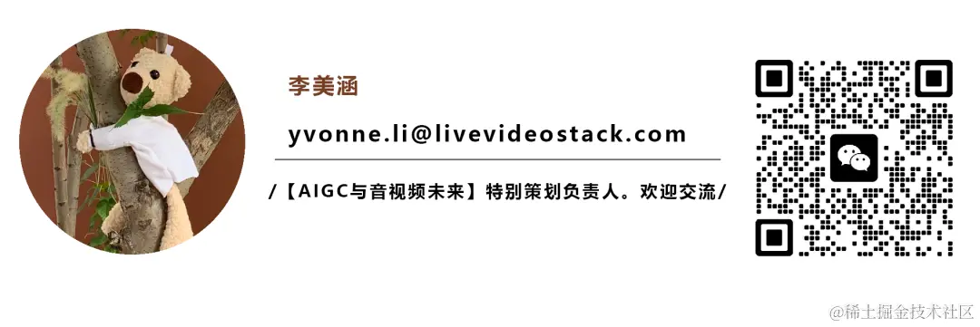如果你对音视频技术有深入研究,如果你对AIGC如何赋能多媒体充满兴趣,并沉淀了个人的认知与思考,欢迎加入“AIGC与音视频未来”特别策划中来,你可以接受LiveVideoStack的采访或者向我们投稿,分享你的经验与思考。