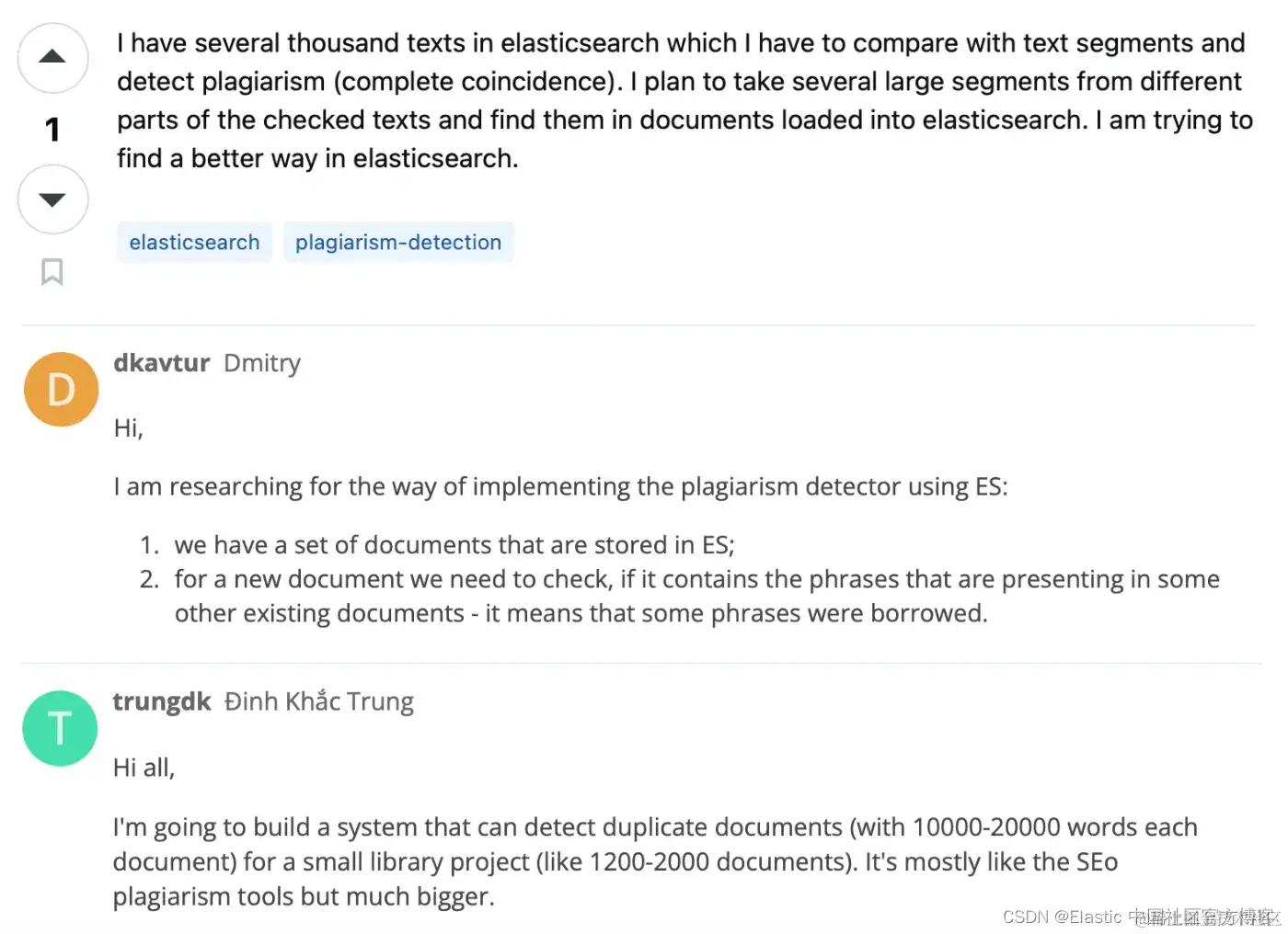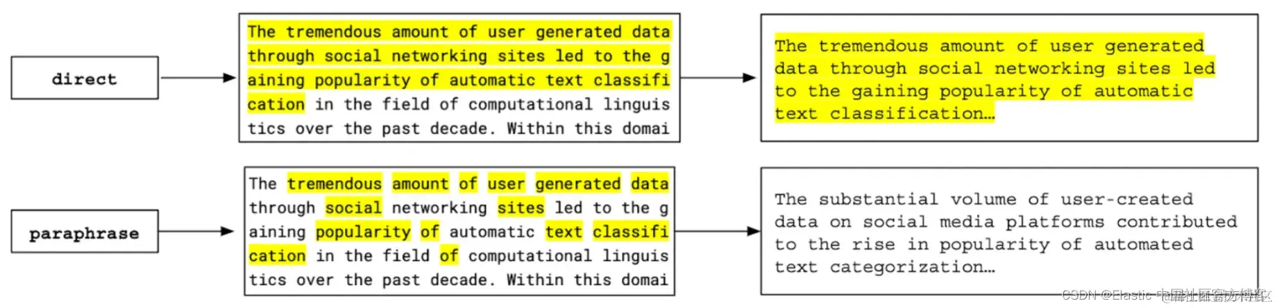 最后,在这些示例中,我们使用了文档的摘要。 然而,抄袭检测通常涉及大型文档,因此必须解决文本长度的挑战。 文本超出模型的标记限制是很常见的,需要在构建嵌入之前将其分割成块。 处理这个问题的一种实用方法是利用带有 dense_vector 的嵌套结构。