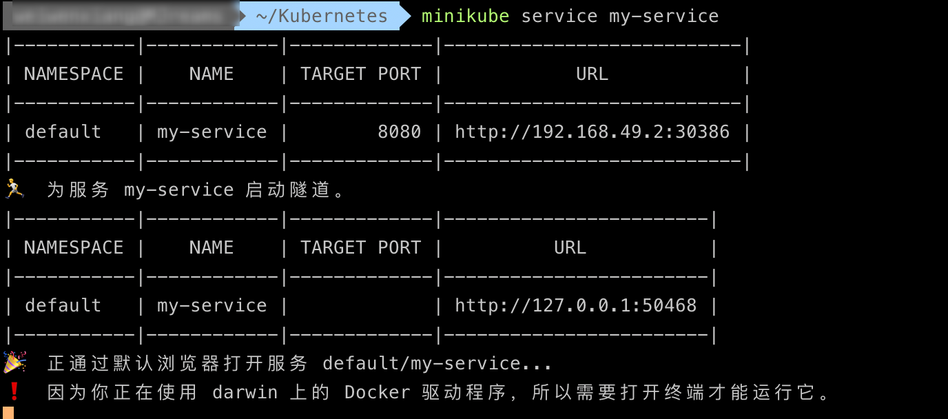 由于本文使用的是minikube ,因此可以执行minikube service my-service