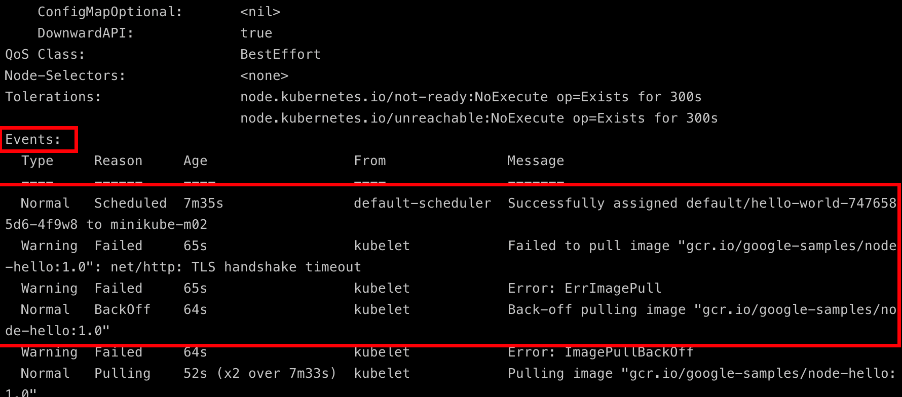在Events中可以看到,失败的原因是拉取镜像失败。我们这边采用的镜像是gcr.io/google-samples/node-hello:1.0。k8s再拉取镜像时是通过调用Docker进行拉取。所以这时候,我们可以通过docker search node-hello:1.0