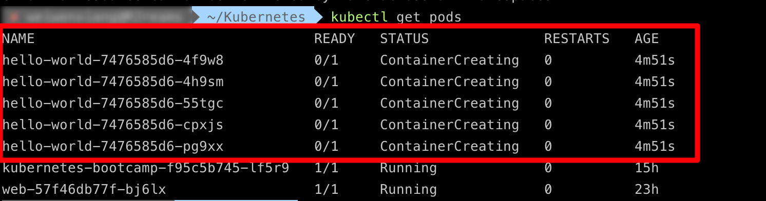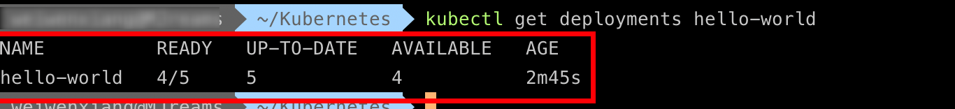 当然也可以执行 kubectl get pods 查看已经部署的5个hello-world pods。