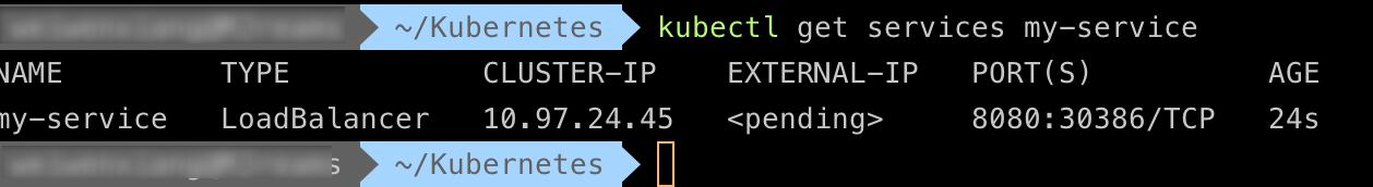 由于我此处使用的是minikube,因此EXTERNAL-IP 显示pending。