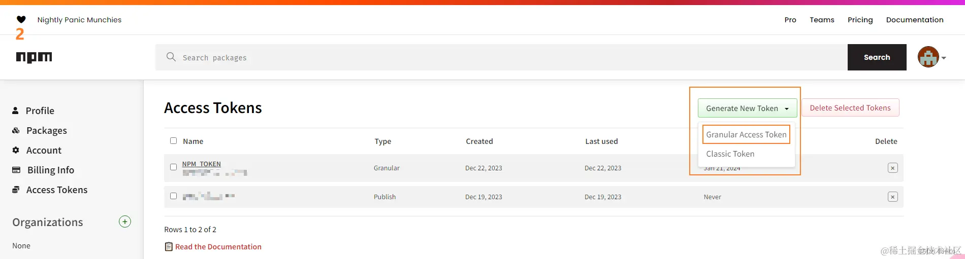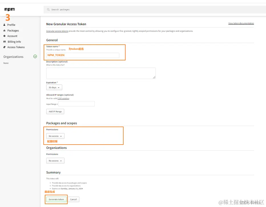 2、首先获取NPM的Access Token: