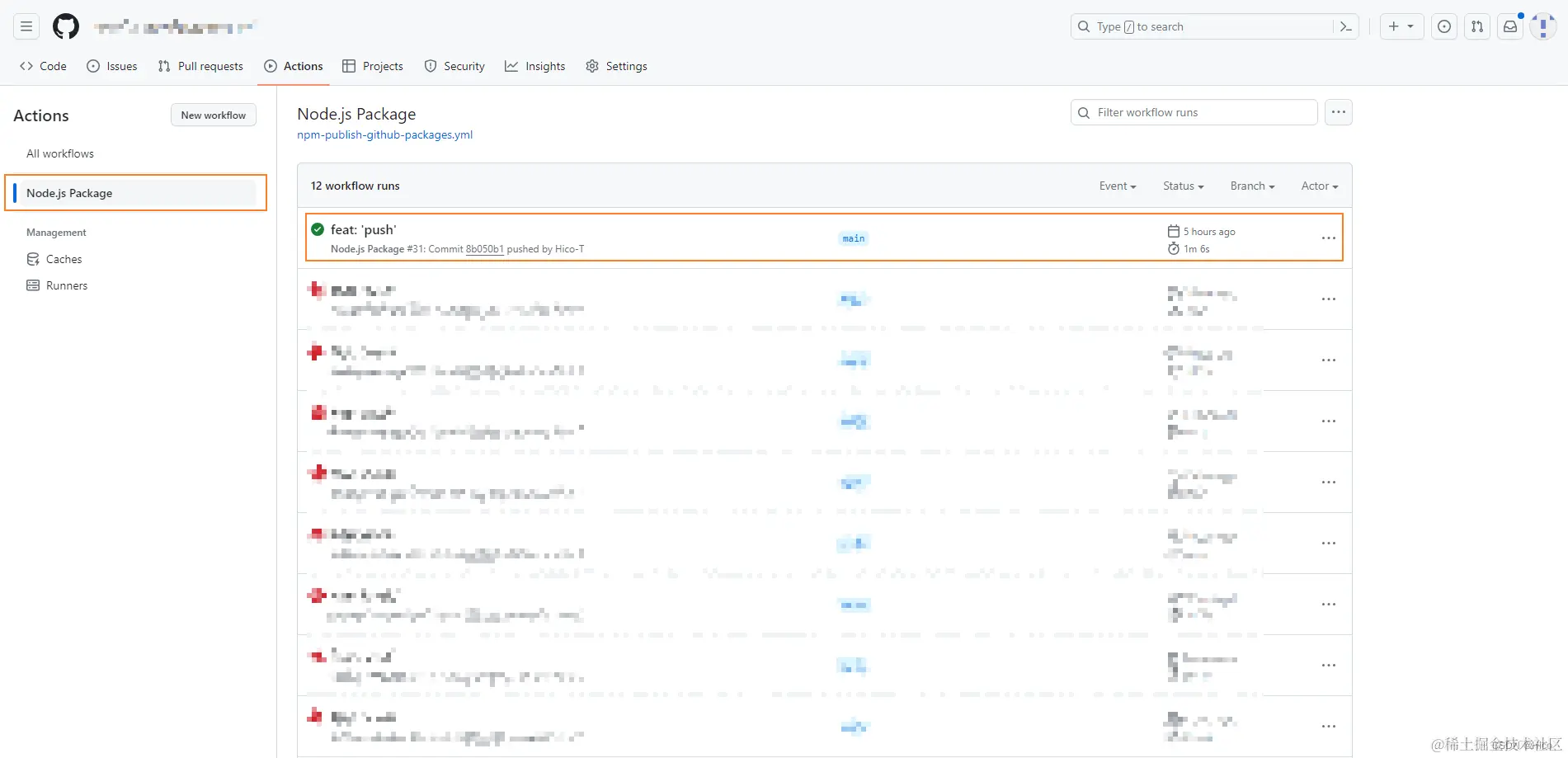 提交完成后我们回到Actions就会看到它自动帮我们提交到了NPM: