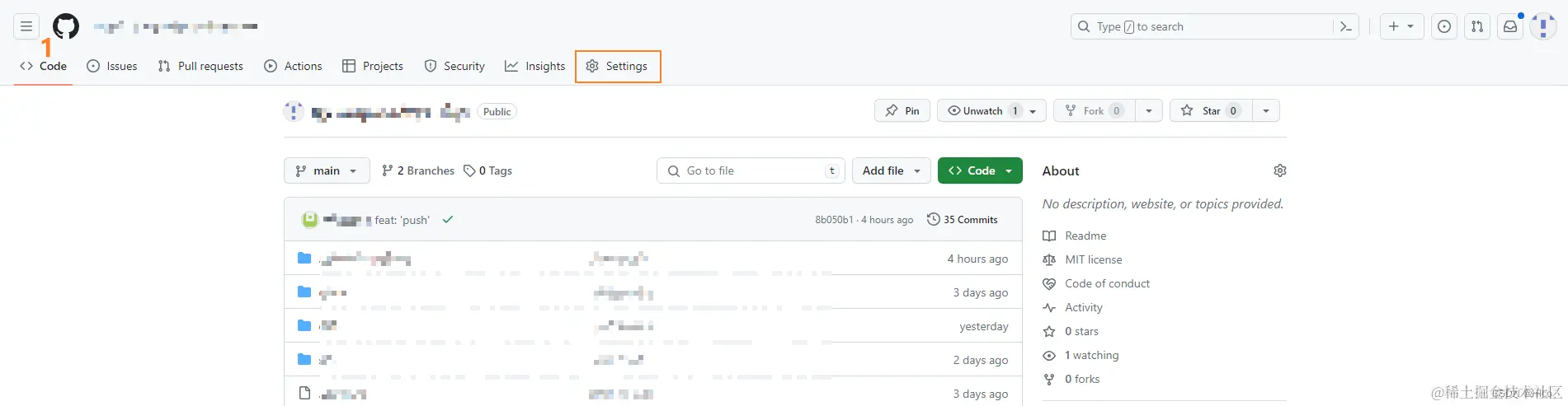 在第一步的时候我们已经注册了GitHub并提交了代码,所以我们直接进入我们的代码仓库中进入下一步骤:
