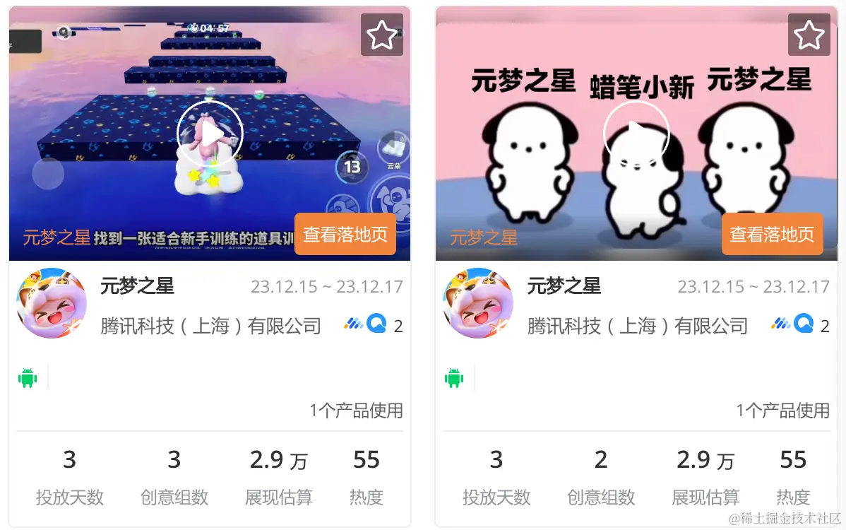 元梦之星在12月15日当日投放素材超2万条,其中视频素材近1万条;