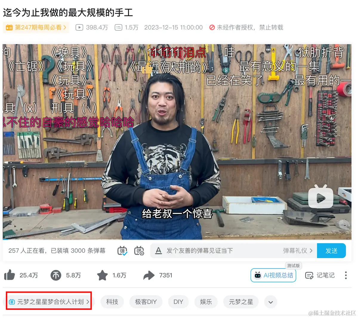 刷刷手工区,手工耿在元梦;刷刷宅舞视频,小D在元梦;刷刷人文历史视频准备龙场悟道,小约翰可汗也在元梦;我打开微博,迪丽热巴、时代少年团在元梦……12月15日,横跨科技、影视、人文、历史、手工、料理、游戏、舞蹈等赛道,几乎所有人都在说着同一句话“快来元梦之星和我一起玩耍吧”。