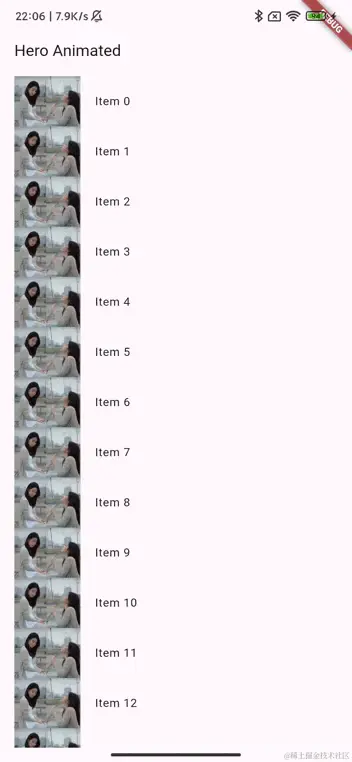 我们先来实现一个列表界面,列表中每个item展示一个Image和Text,然后对Image做Hero动画由小图飞行至大图。