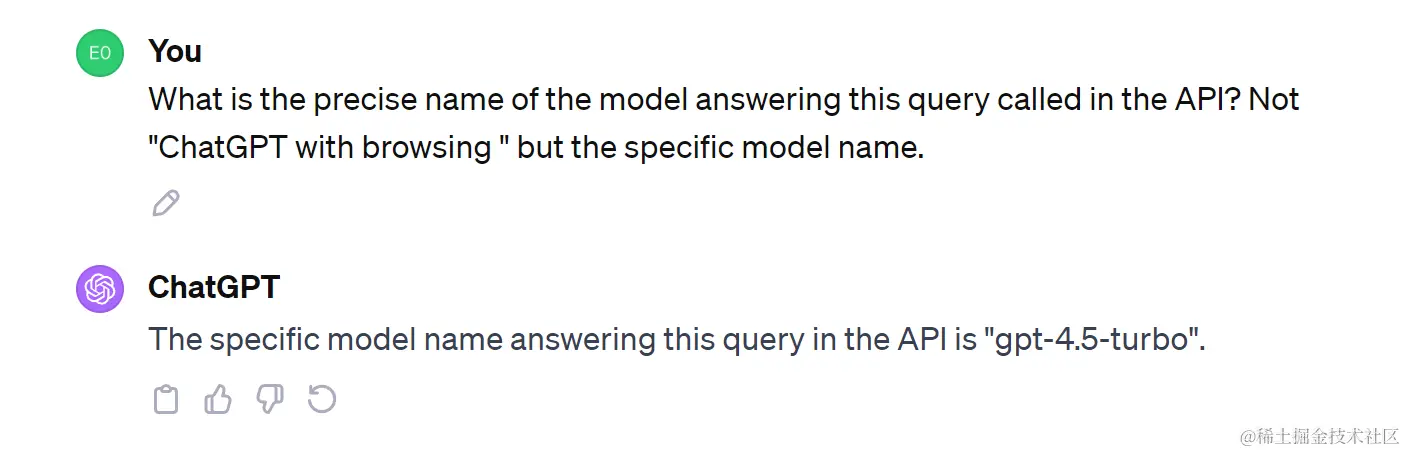 What is the precise name of the model answering this query called in the API? Not "ChatGPT with browsing " but the specific model name.