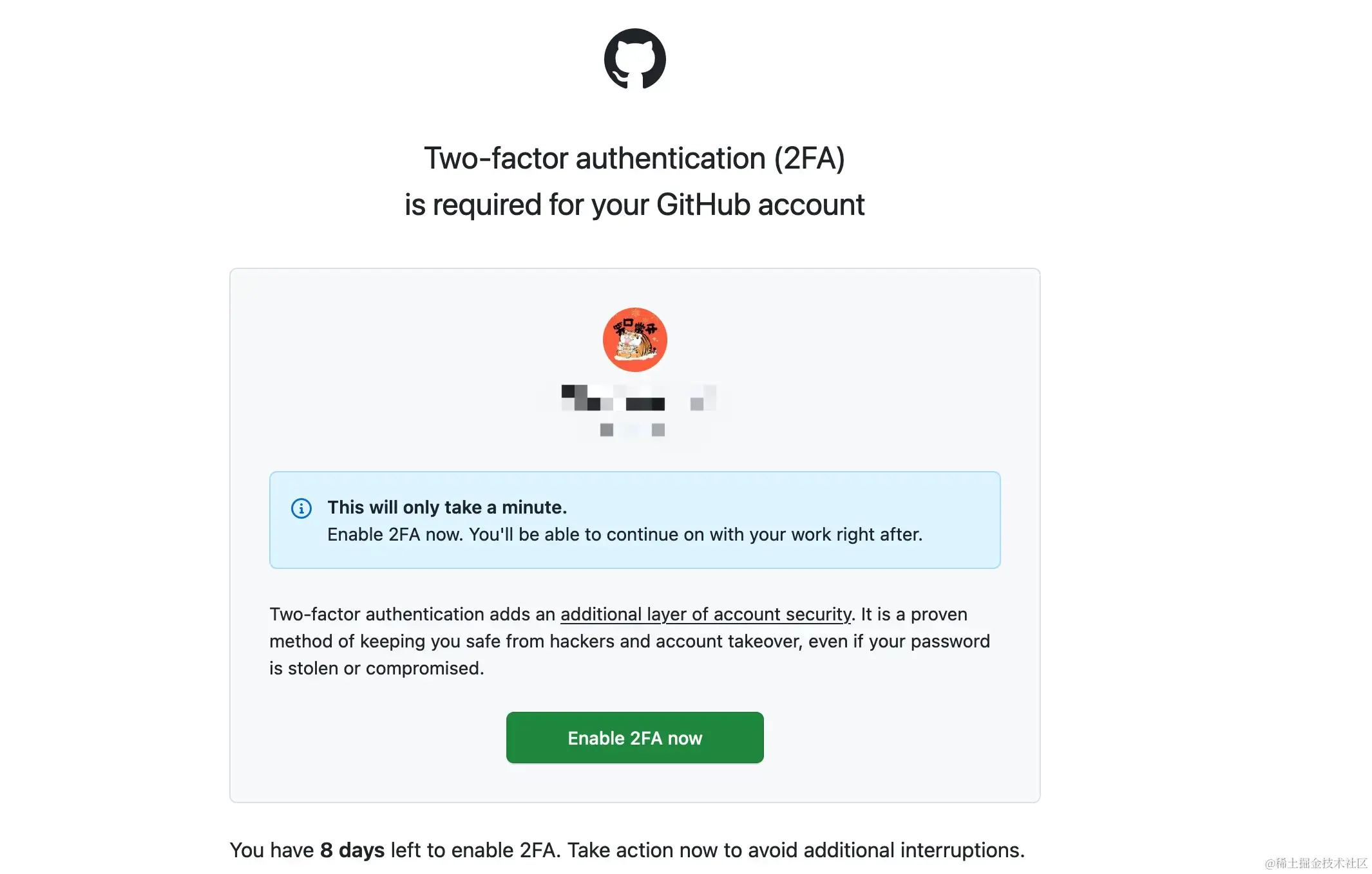 2021年11月,一些未启用 2FA 的开发者账户遭到入侵,导致很多 npm 包被入侵者接管,为此 Github 承诺在 npm 账户安全性方面会投入更多的资源。我们会继续改进 npm 账户安全性,同时也会投入相同程度的努力来保护 Github 开发者的账户。