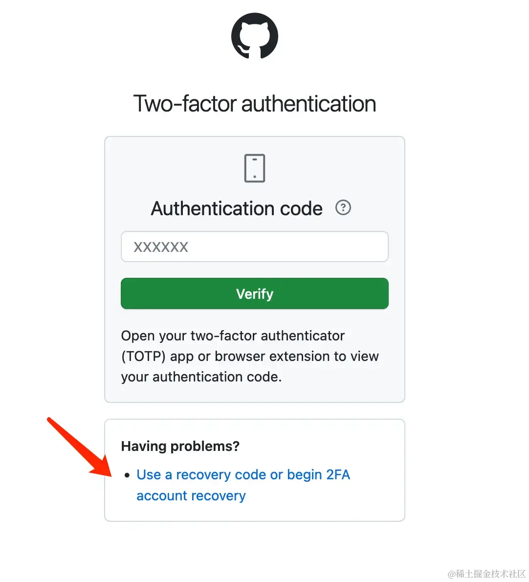 这种场景比较少见,我们在登录时,如果没有 Authentication code,可以使用保存在本地的 Recovery code 进行验证登录: