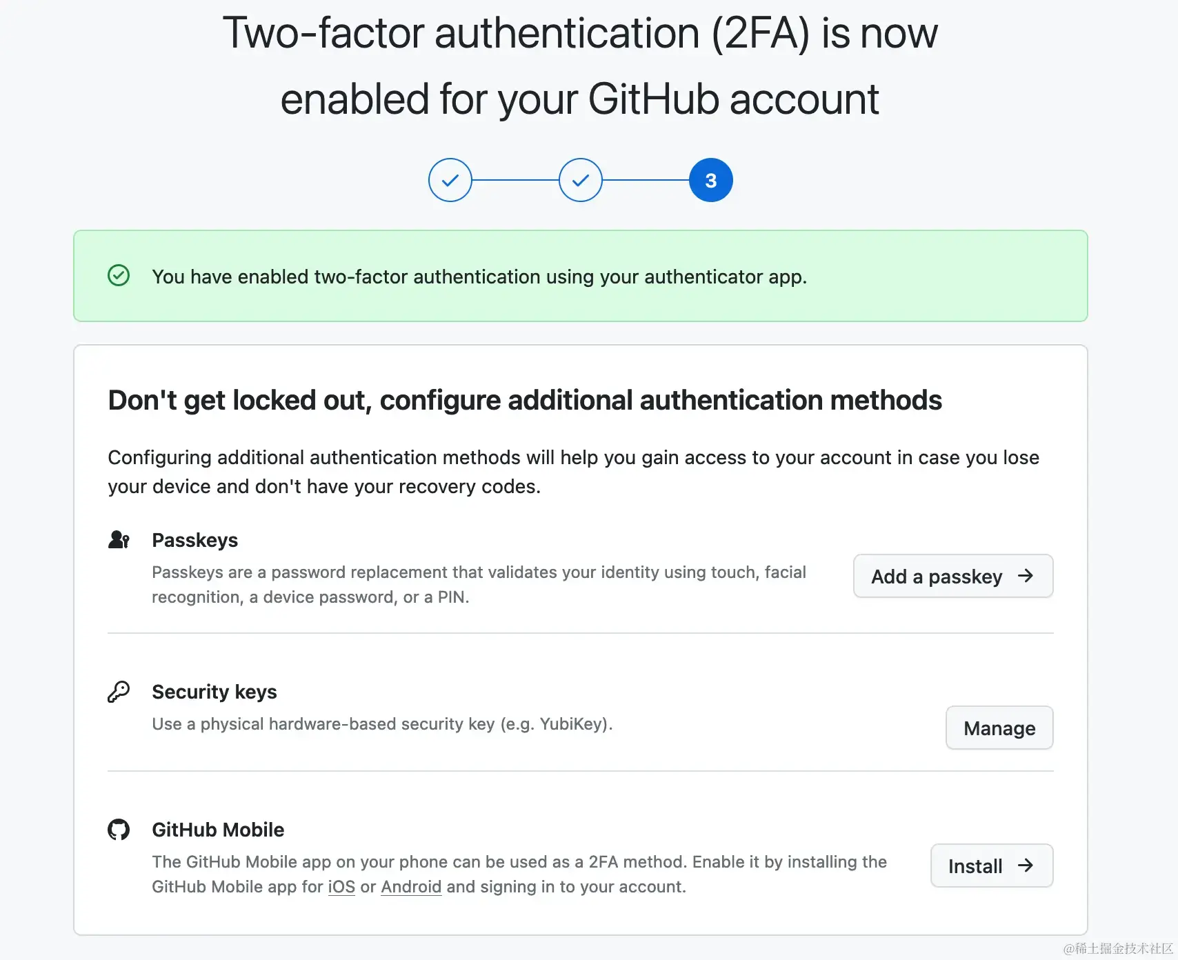 安装好之后,我们可以进行 Github 2FA 的认证操作。
