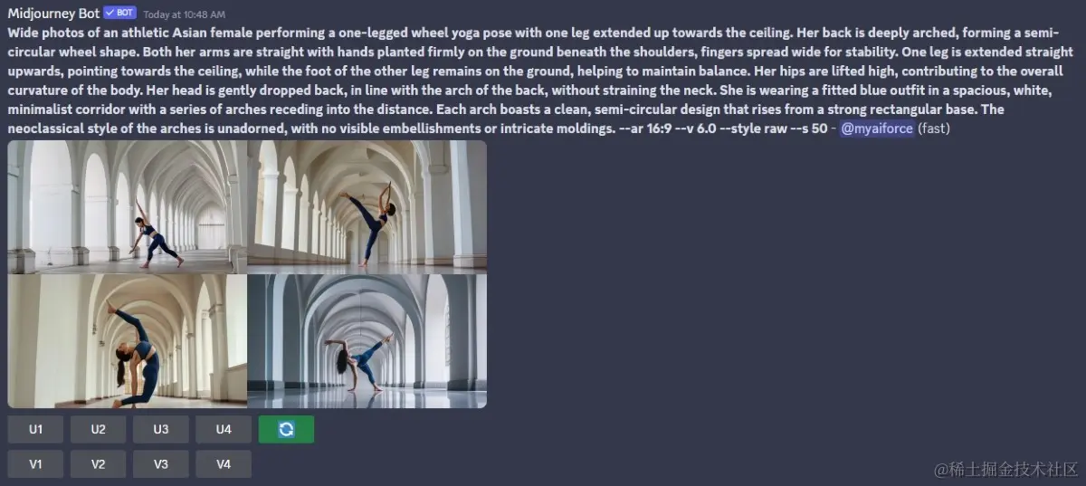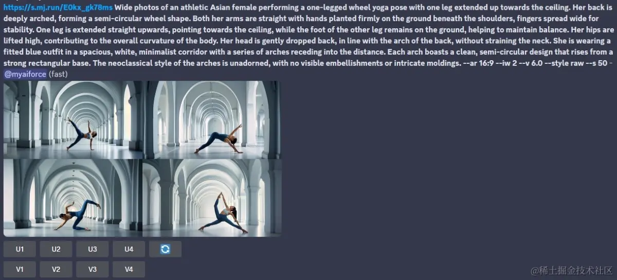 即使我把Unsplash的原图给它做参考,Midjourney离标准动作依然差的很远。
