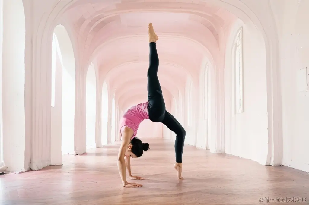 提示词:一位健美的亚洲女性单腿轮式瑜伽的宽幅照片,她单腿向上伸向天花板。她的背部深深拱起,形成一个半圆形的轮子。她的双臂伸直,双手紧贴肩膀下方的地面,手指张开以保持稳定。一条腿向上伸直,指向天花板,另一条腿的脚留在地面上,帮助保持平衡。她的臀部高高抬起,形成身体的整体弧度。她的头部轻轻向后垂下,与背部的弓形保持一致,不会使颈部紧张。她身着合体的蓝色服装,在一条宽敞、白色、简约的走廊上,一连串拱门向远处退去。每个拱门都采用了简洁的半圆形设计,从一个坚固的矩形底座上升起。拱门采用新古典主义风格,没有明显的装饰或复杂的造型。