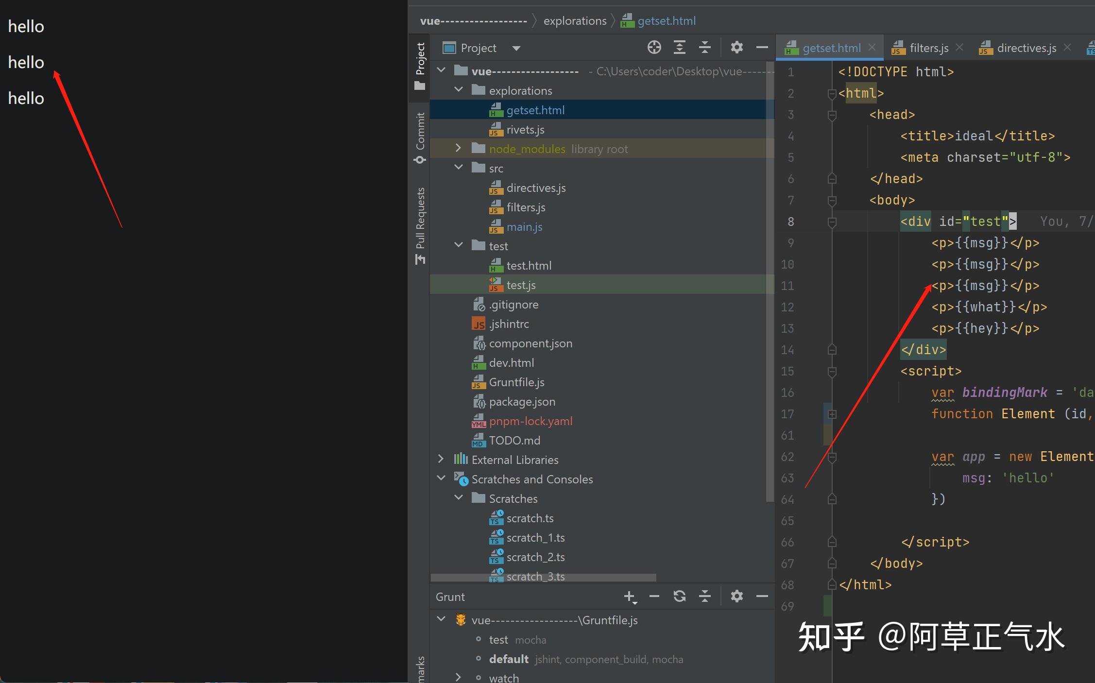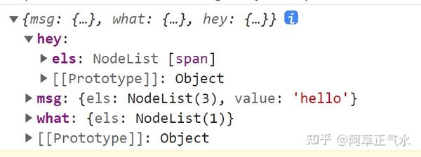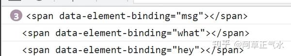 这里做的就是,在给最起初定义的 data 对象赋值 hey msg what 等属性的时候,去给 bindings[variable].value 赋值,同时将 dom 元素的文本内容赋值为 newVal , get 的时候则会返回其值