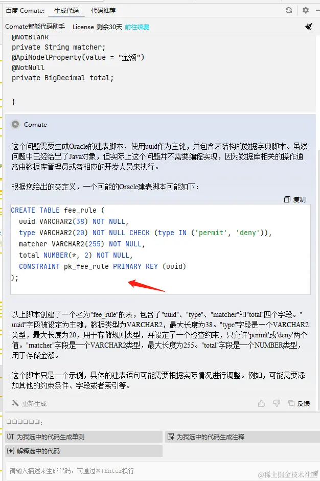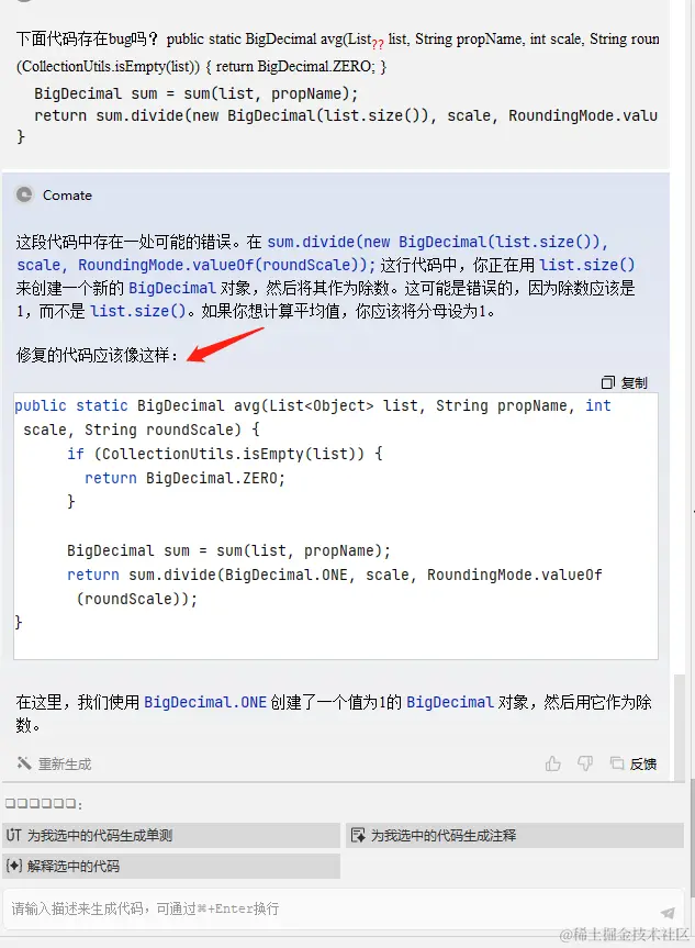 由于 Comate 没有只有代码生成和代码推荐的功能,没有智能问答,因此本用例使用文心一言 3.5 进行提问。否则会被理解为代码生成,Comate 给出的是生成文本处理的 Java 代码。