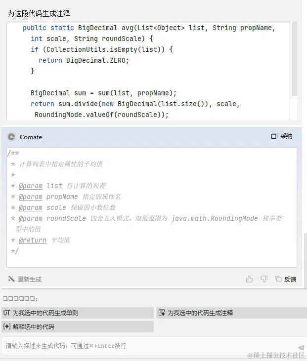 - 生成代码注释