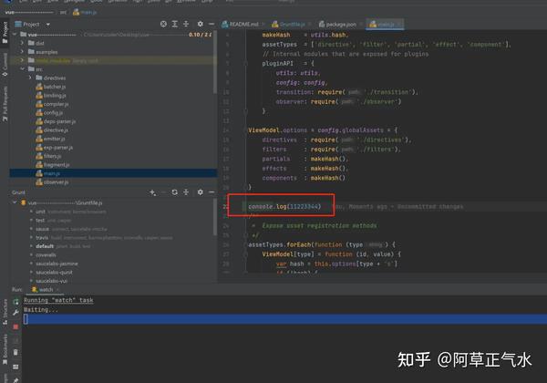 盲猜,watch 是一个热编译的选项,双击 watch 命令,找到主文件入口