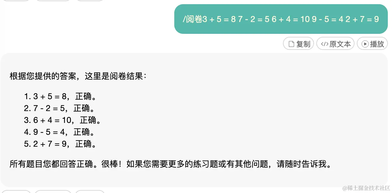 “阅卷”指令:注意GPT可能会给出错误的判断结果,大模型的数学能力普遍存在问题,即使是10以内的加减法。