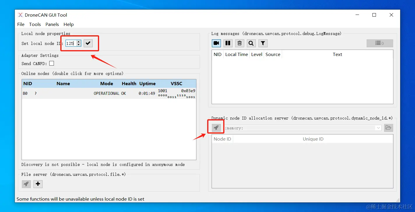 在这期演示过程中,我们不仅需要用到UartAssist串口调试助手,还需要用到dronecan_gui_tool上位机,在第一期视频中我们已经介绍过UartAssist串口调试助手的安装与使用(juejin.cn/post/731523… ),dronecan_gui_tool上位机的安装与使用可以参考Pogo-DroneCAN调试器系列教程(juejin.cn/post/731572… )。