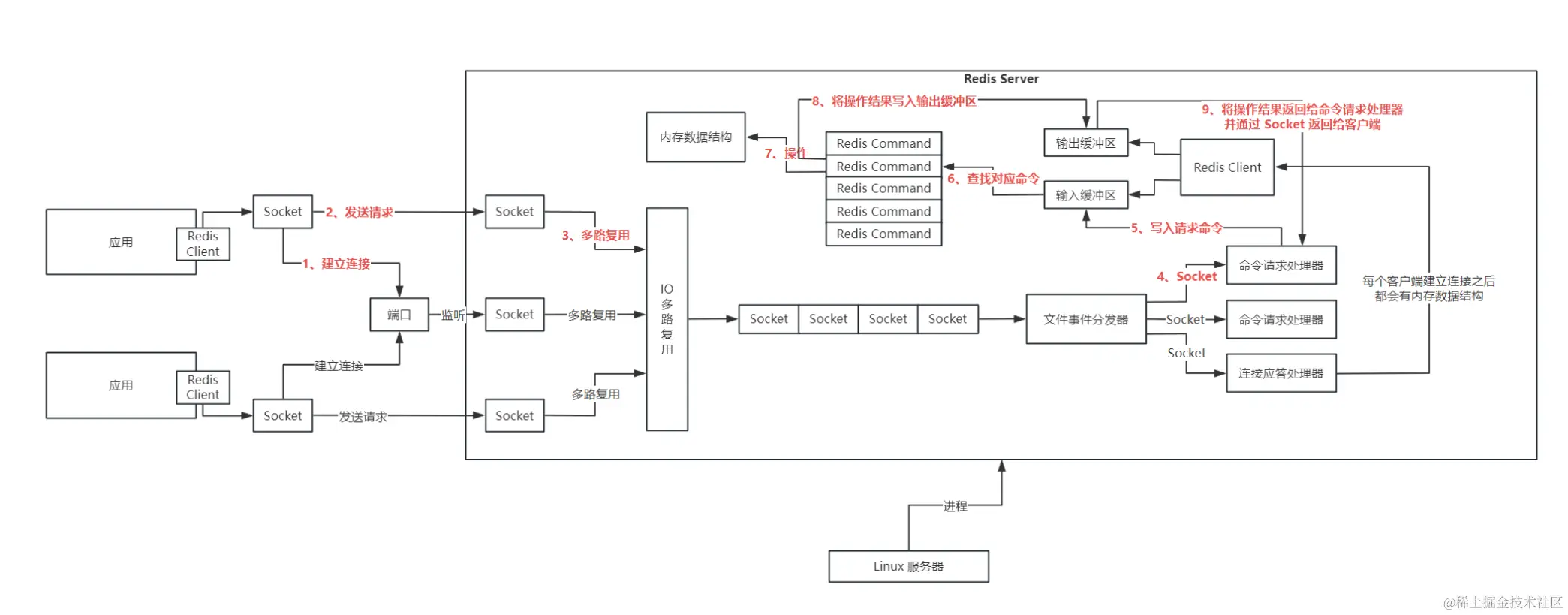- 最终命令请求处理器将输出缓冲区中的响应结果通过 Socket 发送给客户端