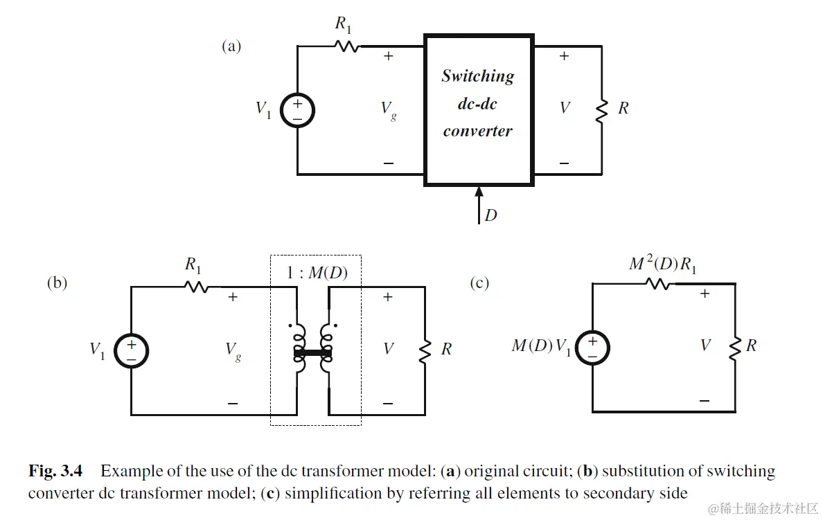 将开关和电容电感model成无损耗的dc transformer, 电压比为1:M(D)