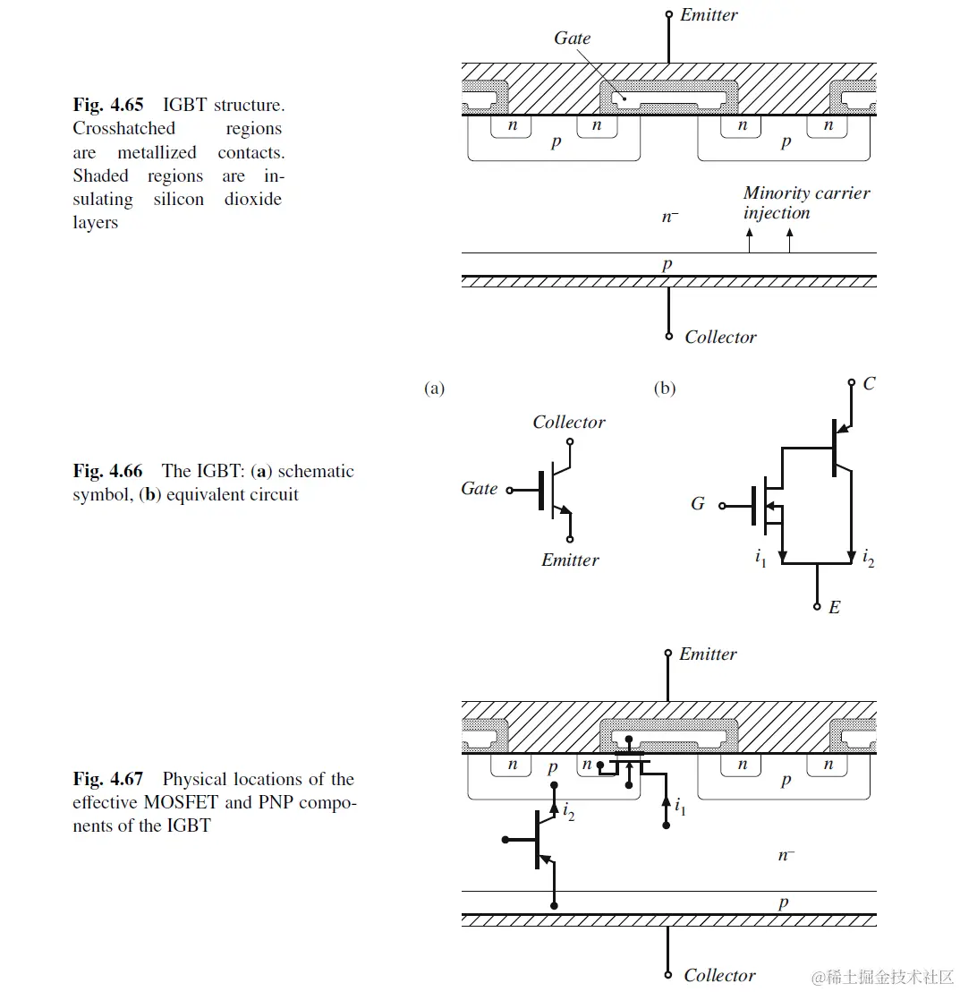 IGBT的刨面图和symblo如下所示. IGBT的关断时间为0.5us-5us. BJT的i2存在拖尾现象.