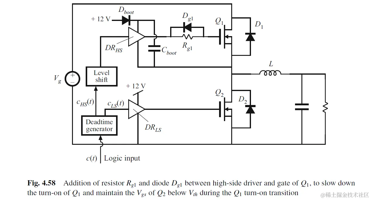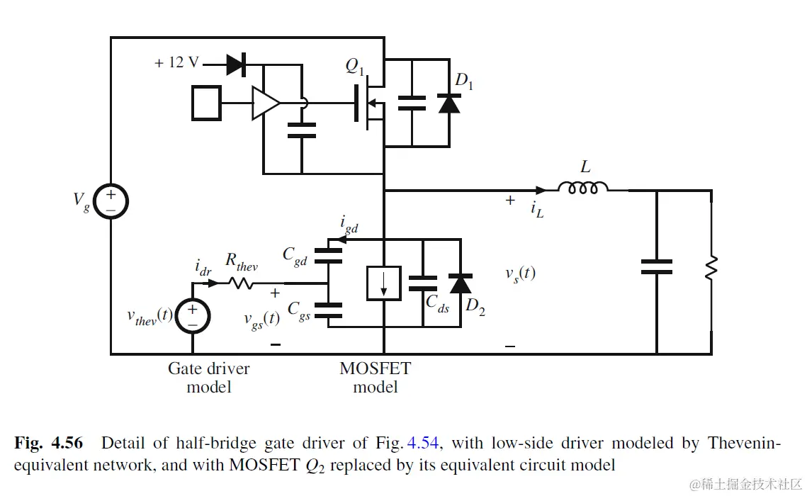 对于half-bridge gate driver, 其结构如下. Rthev代表driver的输出电阻, 为10 ohm级别.