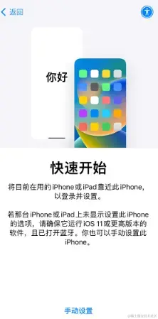 步骤1:将新苹果手机进行开机,然后将它放在旧苹果手机的旁边,然后根据提示进行操作。