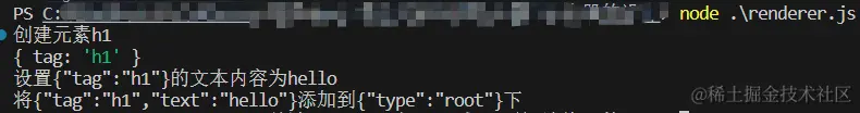 const renderer = createRenderer({ createElement(tag) { console.log(`创建元素${tag}`); console.log({ tag }); return { tag } }, setElementText(el, text) { console.log(`设置${JSON.stringify(el)}的文本内容为${text}`); el.text = text }, insert(el, container, anchor = null) { console.log(`将${JSON.stringify(el)}添加到${JSON.stringify(container)}下`); } }) const container = { type: 'root' } // 设置一个挂载点 renderer.render(vnode, container)