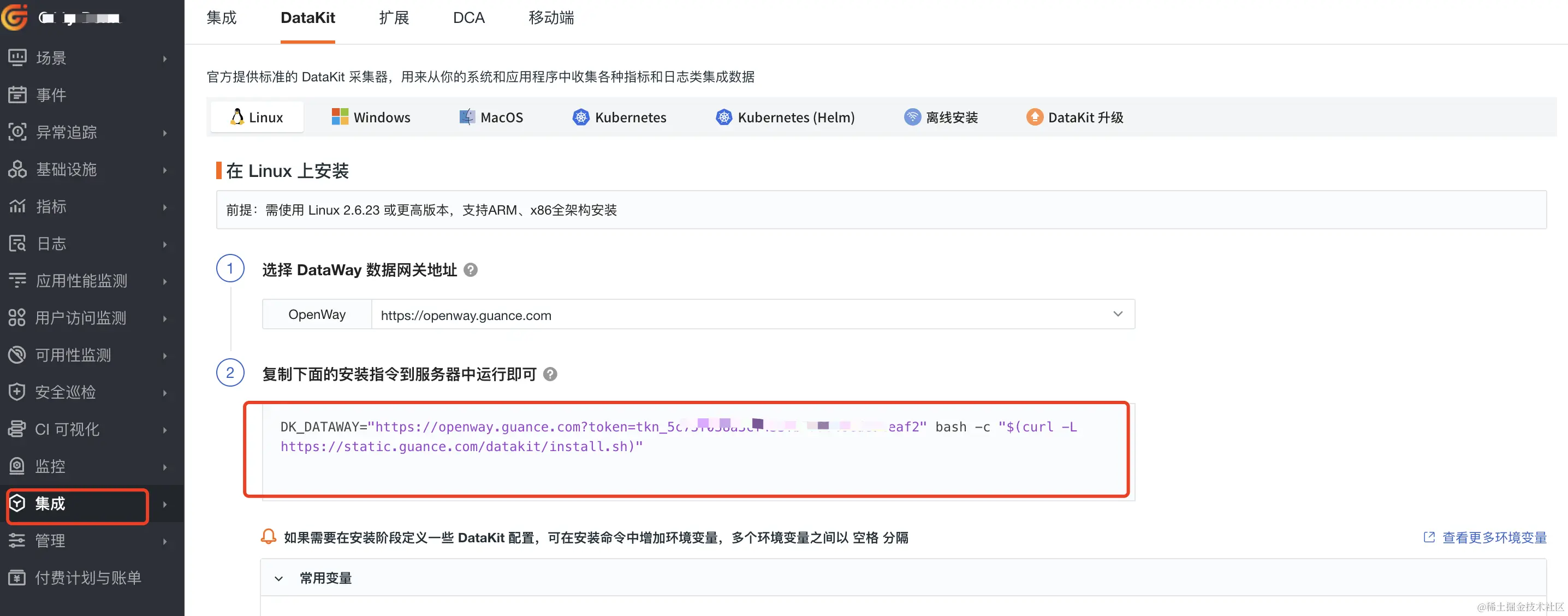 - 安装datakit。