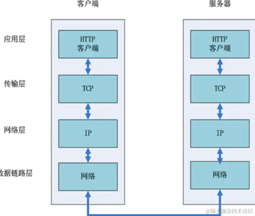 互联网内各网络设备间的通信都遵循 TCP/IP 协议,会通过分层顺序与对方进行通信。分层由高到低:应用层、传输层、网络层、数据链路层。