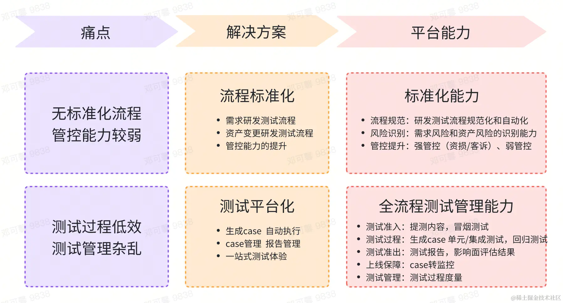 - 测试用例设计多为个人经验,分散在各个测试报告中,无统一的用例管理;各业务测试报告各有不同,大多按照研发、QA 的个人经验输出,可读性不高,缺乏统一的测试管理。