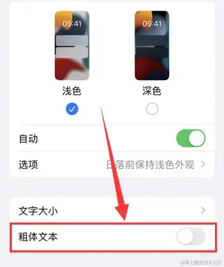 步骤2:在弹出页面中打开**【粗体文字】**开关即可。