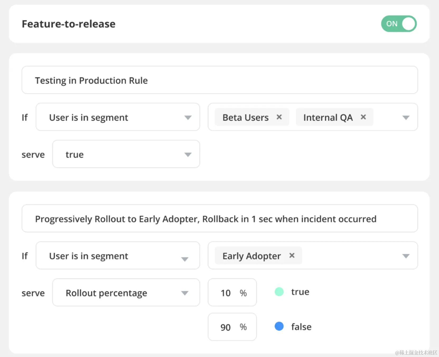 是一款集"功能开关+ 灰度发布 + 远程配置 + ab测试 + 版本控制 + 持续交付 + 订阅管理 + 等等" 多个能力融为一体的技术,主要机制是允许开发人员在生产环境中启用或禁用新功能,这种方式下可以让开发人员以更加灵活的方式逐步推出新功能,并根据用户的反馈进行调整。
