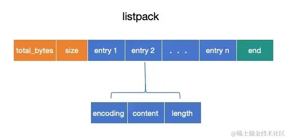 我们可以看下,listpack和ziplist的整体结构大同小异,也是通过total_bytes字段记录listpack所占的空间,size字段记录entry数量,最后也有个结束点标记,只是少了ztail_offset字段。