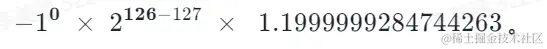 ●指数位是 01111110(126),表示 -1。(-1 偏移 127,即 126 - 127 = -1)