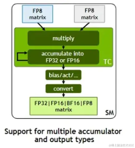 ●相较于 不支持 fp8 的 3090/A800 来说,4090 又支持 fp8 这一新特性;