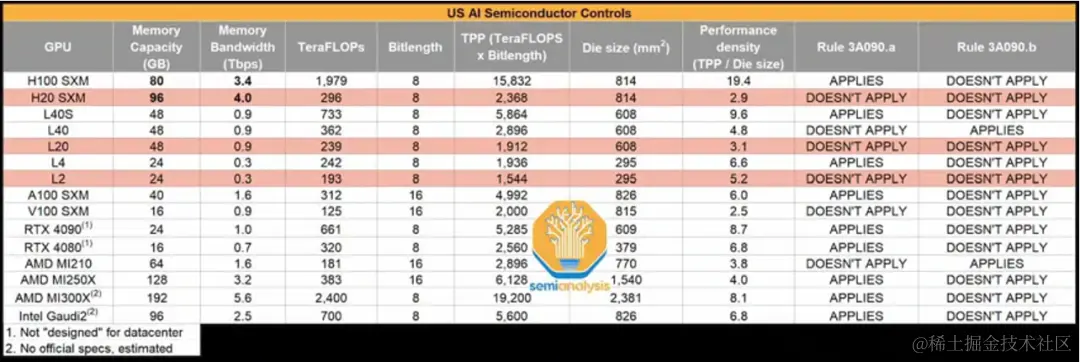2023年10月17日,是美国商务部的新一轮限制,这次除了 A100、 H100,还限制了 A800、H800、L40s,甚至游戏卡 RTX4090 也不例外。
