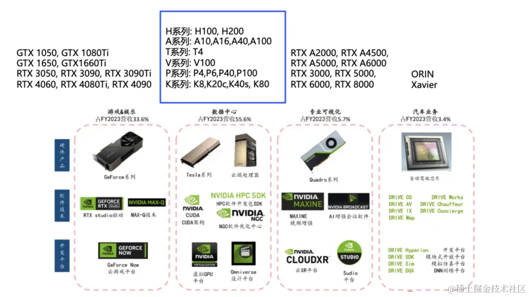 以英伟达的产品来举例,有如下产品系列