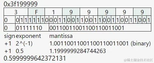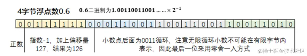 以 32 位的 float 为例,0.6 可以表示成