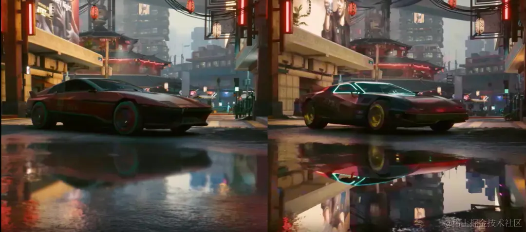 RT Core(RT核心)非常关键,实现了现代GPU中的光线最终效果。渲染效果中最重要的是光追,看这张光追低级效果和光追高级效果的对比图,差距非常明显,折射、反射、光影都呈现出很大的差距。