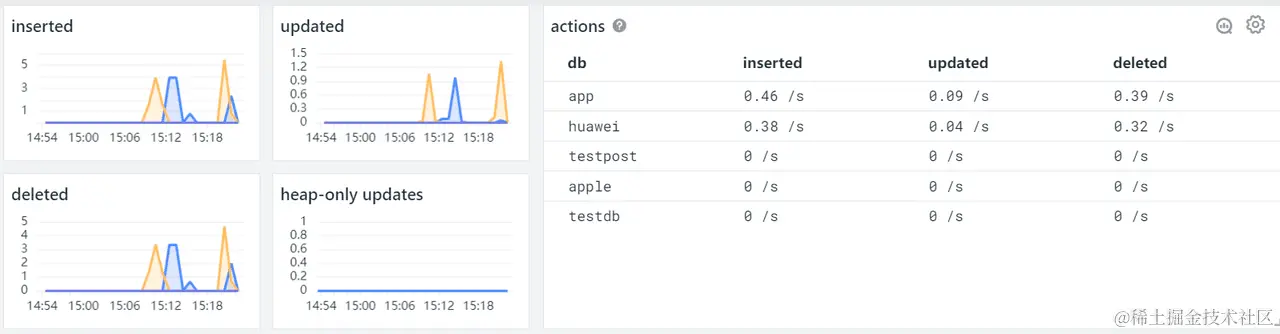 - 当 tup_updated 很高说明数据库有很频繁的更新,这个时候就需要关注一下 vacuum 相关的指标和长事务,如果没有及时进行垃圾回收会造成数据膨胀的比较厉害,一定程度会响应表查询效率。