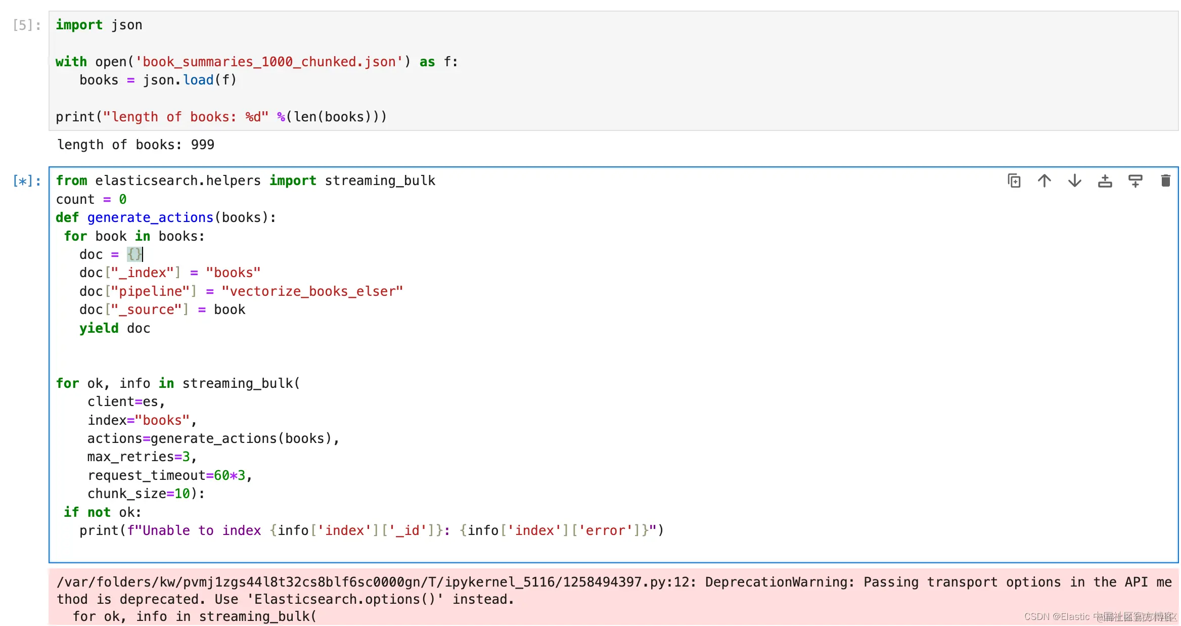 8. from elasticsearch.helpers import streaming_bulk
