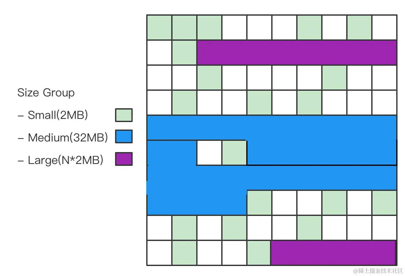 Medium Region(中等区域): 大小为32MB,用于存放大于等于256KB但小于4MB的对象。中等区域的引入有助于处理中等大小的对象。