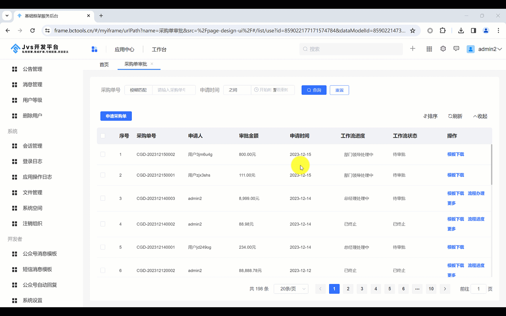 在业务应用中通常需要把行数据某字段赋值到一个文件模板上,用户下载该文件模板用于盖章或签字等线下操作。这样的场景在JVS低代码平台上可以通过行内按钮配置逻辑引擎实现。