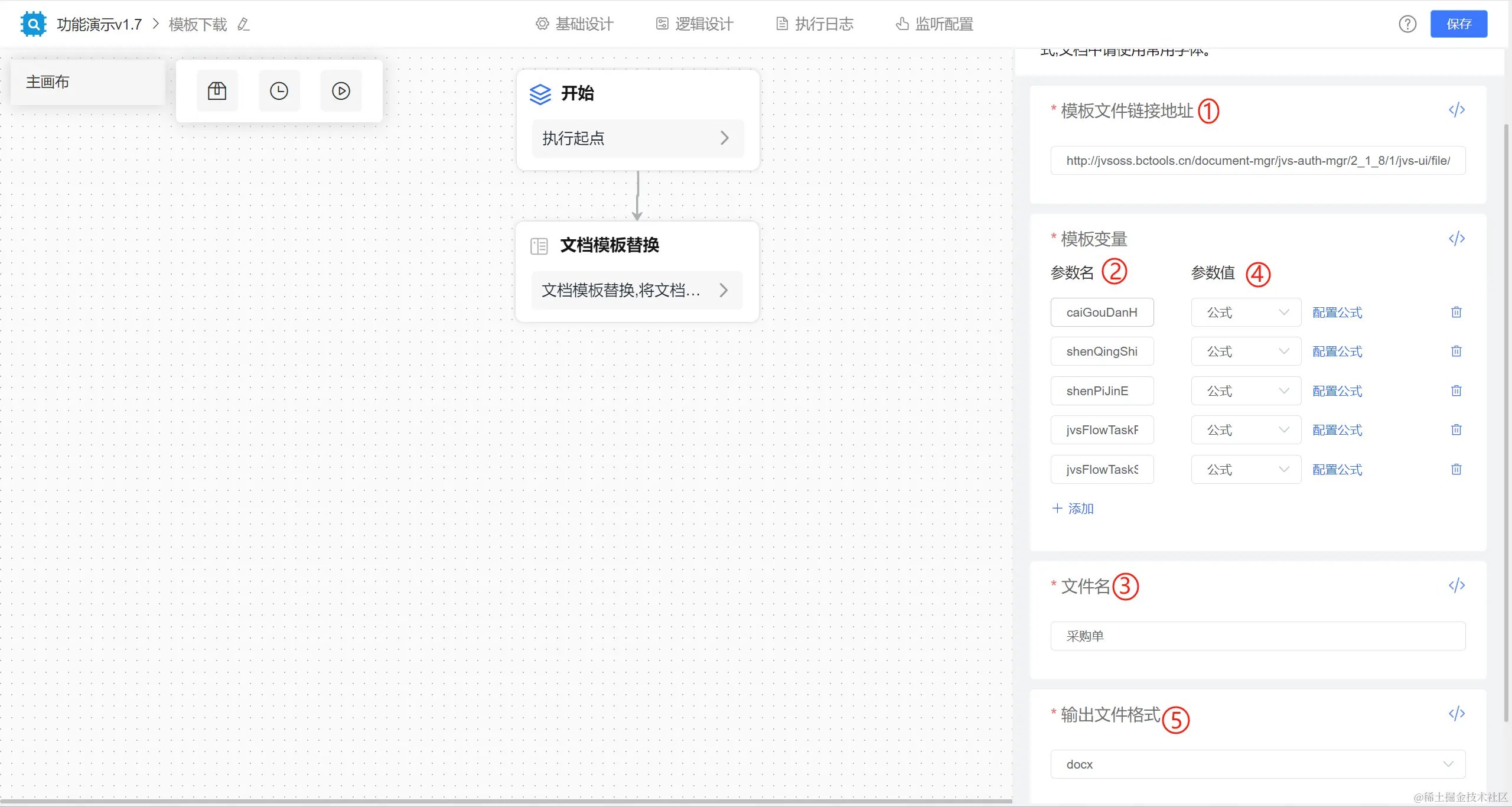 文档模板格式如下图:参数名必须同逻辑引擎文档模板替换节点的参数名一致。