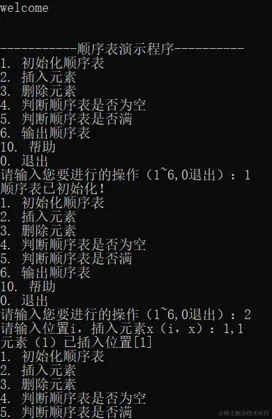 printf("1. 初始化顺序表\n");